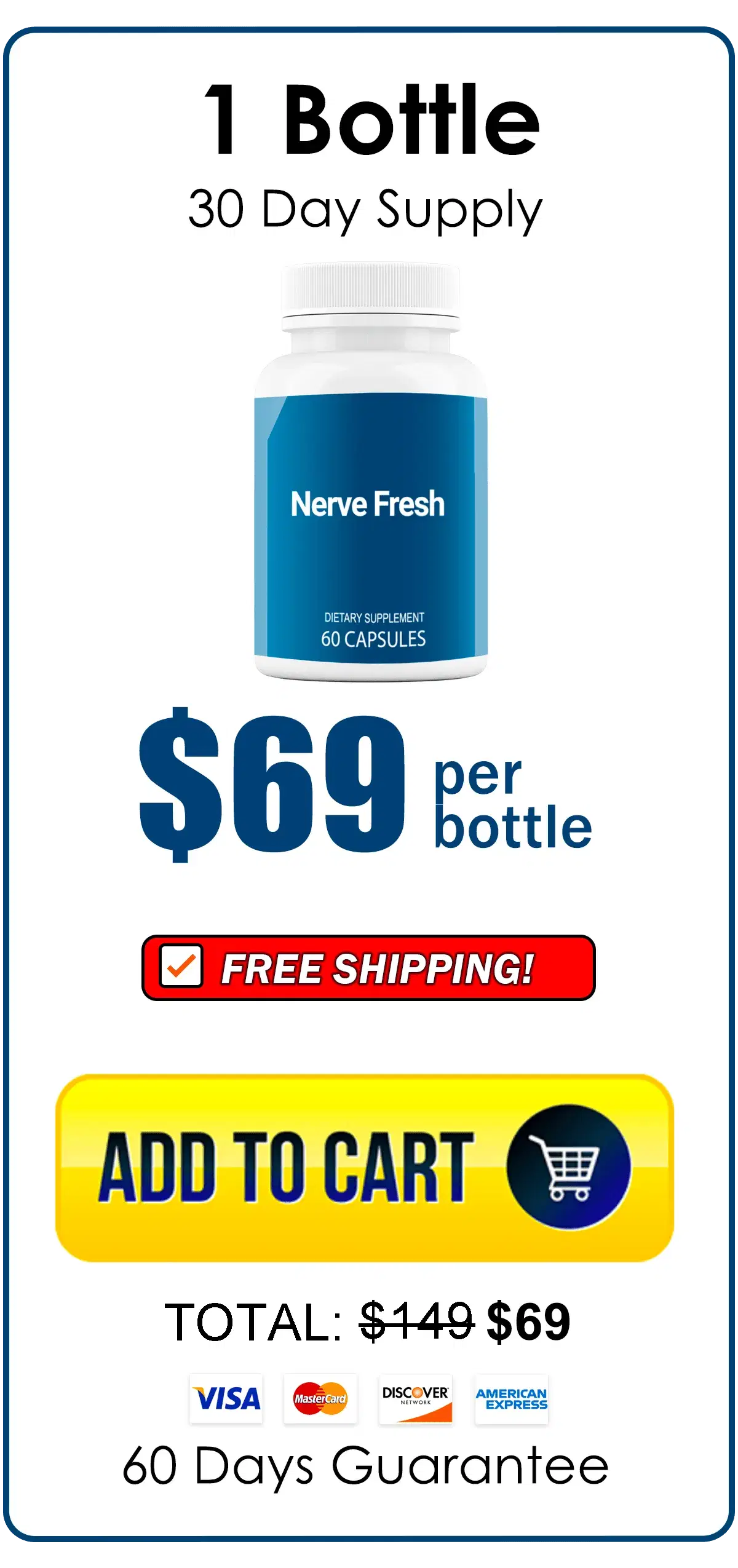 We believe in the effectiveness of Nerve Fresh, but if you’re not completely satisfied, we offer a 60-Day money-back guarantee. Simply reach out to our customer service team, and we’ll process your refund—no questions asked